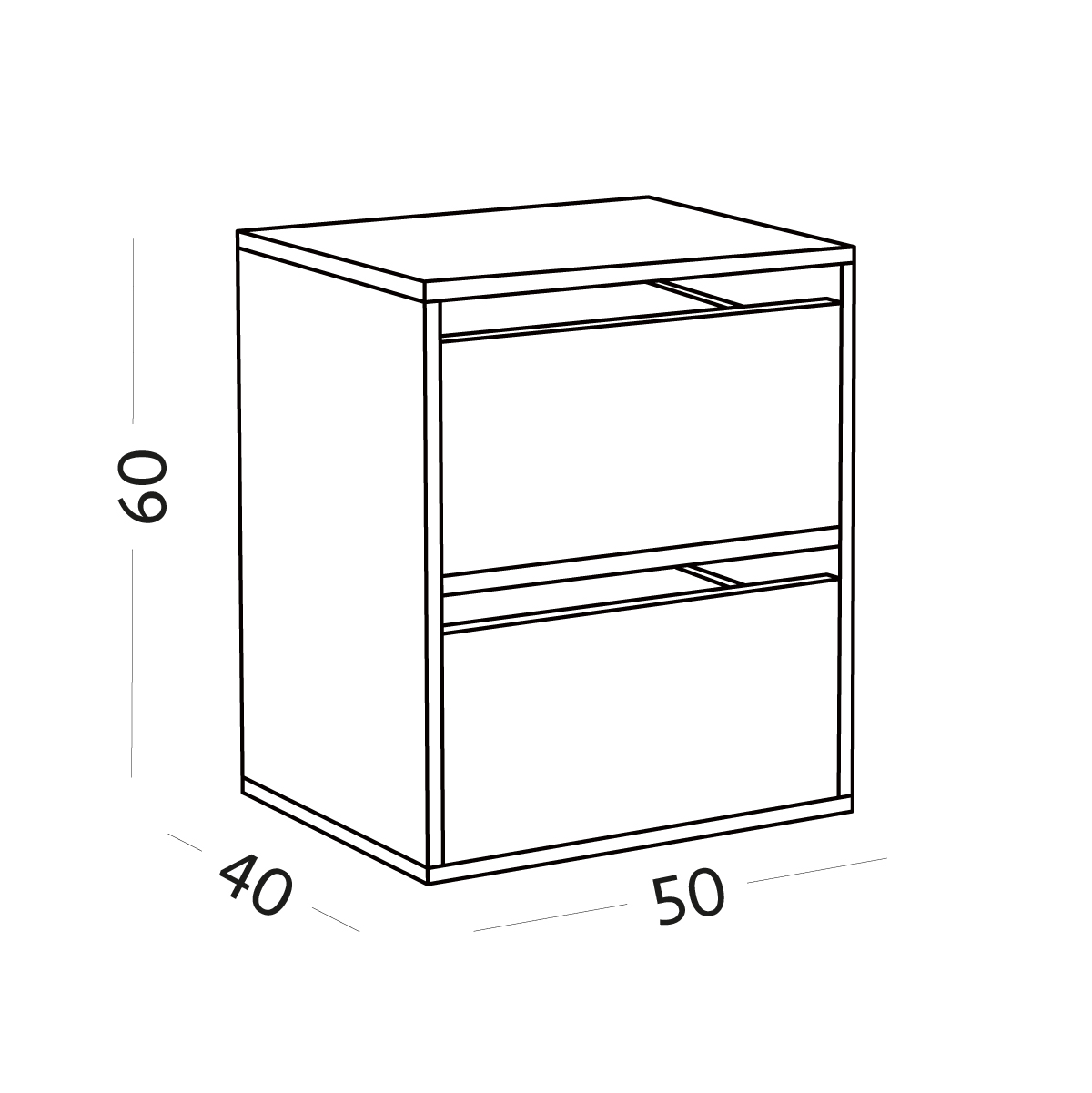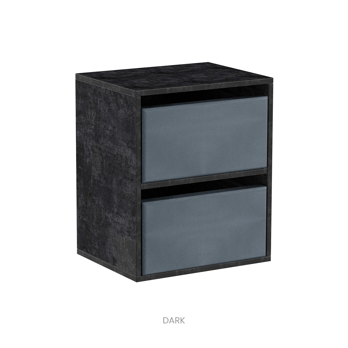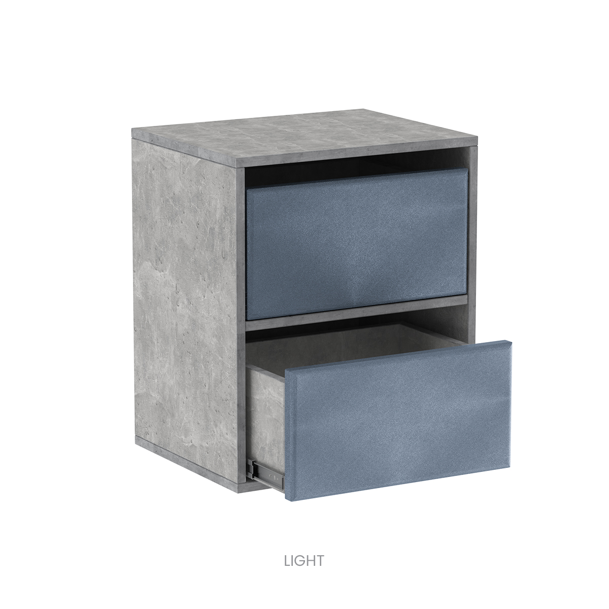 Stolik NIMO łączy w sobie czyste linie z praktycznym rozwiązaniem do przechowywania w postaci dwóch szuflad. Elegancki korpus w dekorze betonu (Dark / Light) uzupełniają dwie szuflady z tapicerowanym frontem w identycznej tkaninie tapicerskiej jak materiał łóżka, co wzmacnia ogólne wrażenie z połączenia łóżka i stolików nocnych, a jednocześnie podnosi walory estetyczne zarówno łóżka, jak i stolików nocnych.