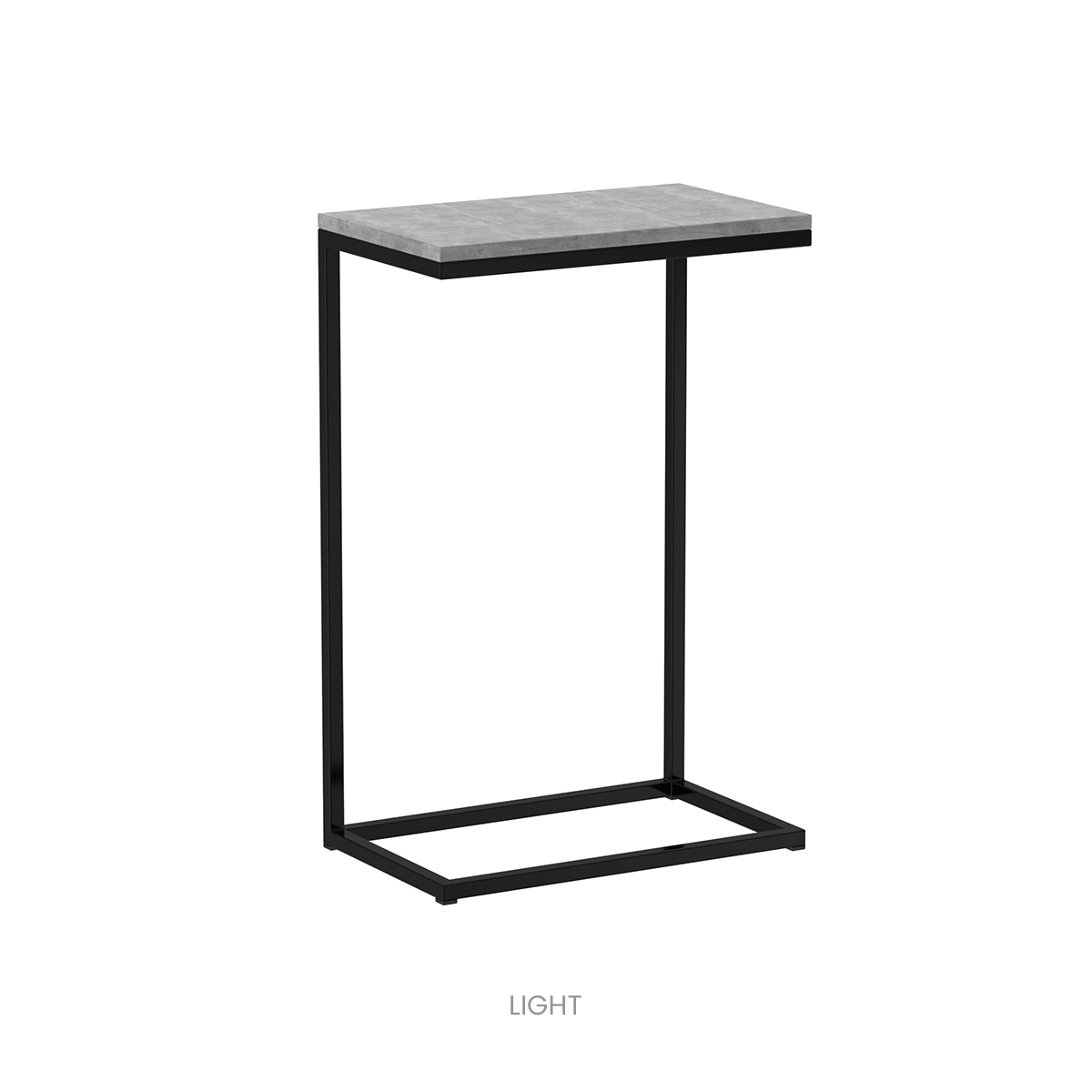 Stolik PIETRO charakteryzuje się funkcjonalnym, nowoczesnym designem, w którym nacisk położono na prostotę, stabilność i wizualną lekkość. Przyciąga uwagę elegancką metalową podstawą i prostym blatem w dekorze betonu (Dark / Light). Minimalistyczna forma w połączeniu z industrialnym charakterem tworzy ponadczasowy dodatek do nowoczesnych wnętrz.