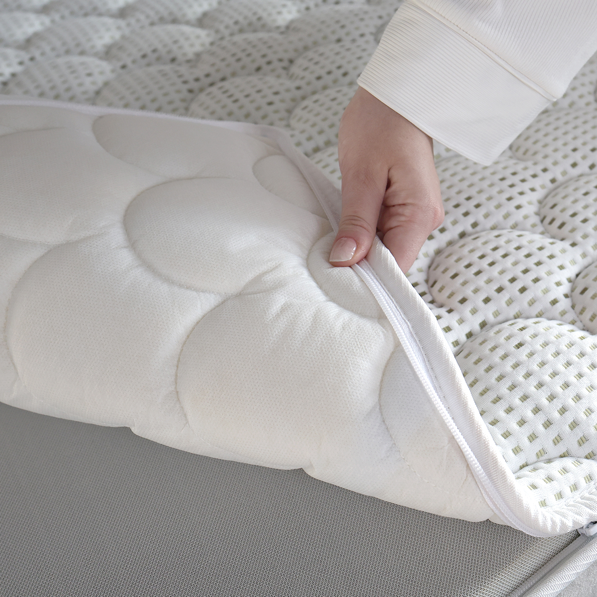 • zdejmowany pokrowiec: AVOCADO - gramatura 365 g/m2, pikowany z pianką wysokoelastyczną – 2 cm + pikowany włóknem klimatyzującym 100 g/m2, pikowany włóknem klimatyzującym 300 g/m2